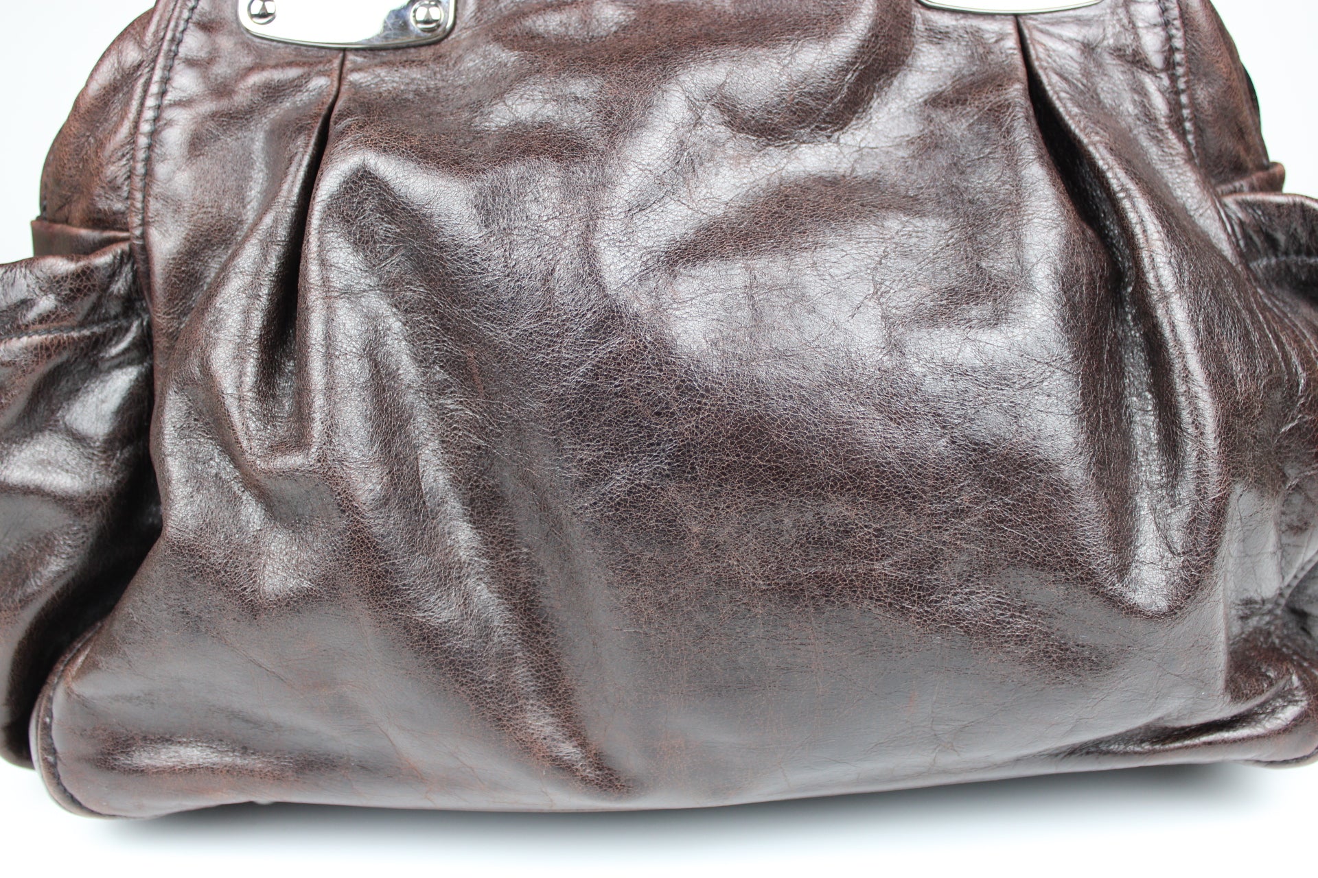 Condition: good condition. Study photos and video in detail for full condition description. Bag stuffed in photos; this is a slouchy, unstructured bag.