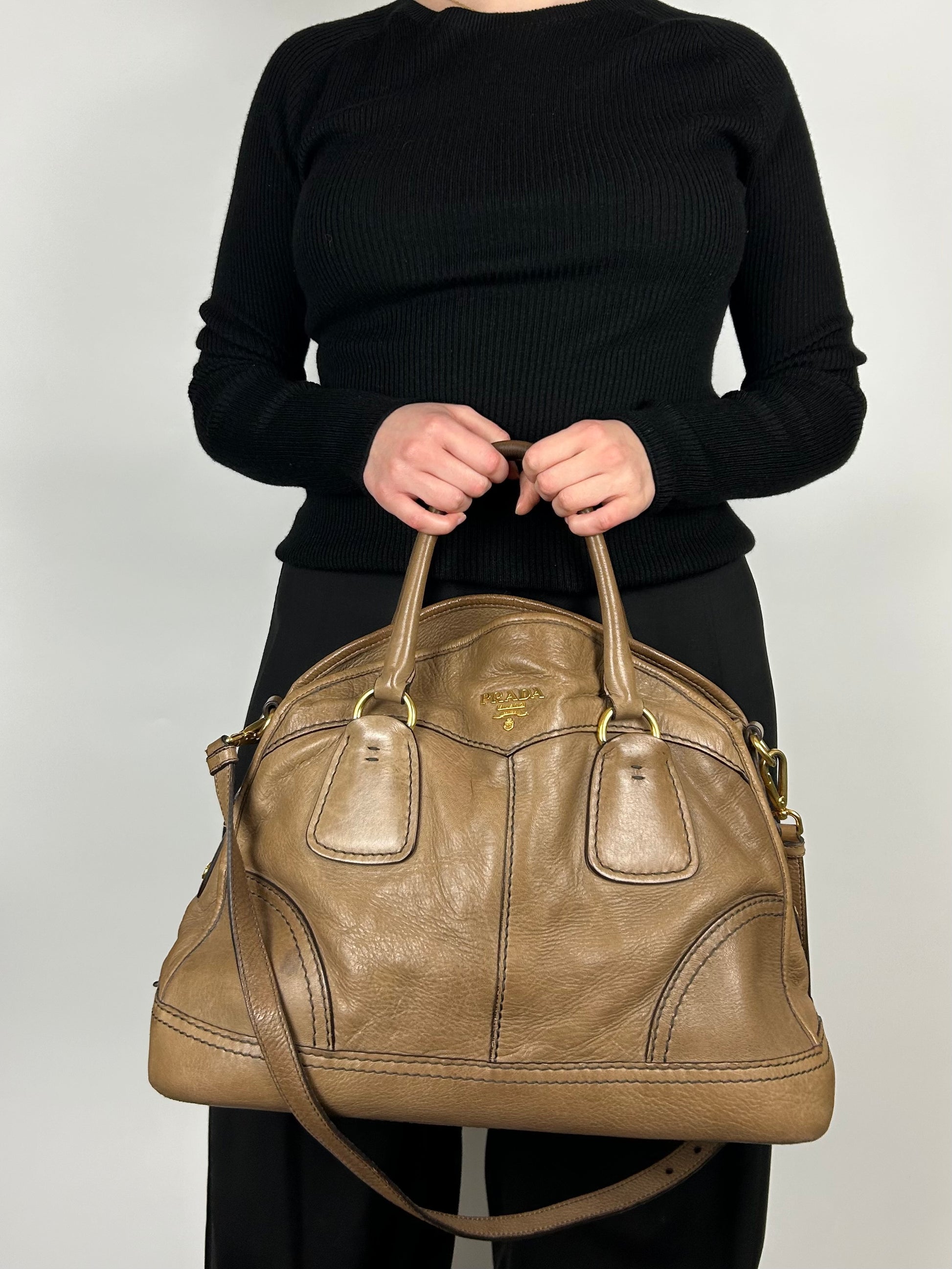 Prada Cervo Bowling Hobo 2-Way Bag